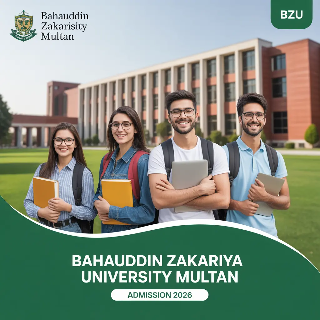 Bahauddin Zakariya University Multan (BZU) has officially opened admissions for Spring 2026, offering opportunities to students across Pakistan to enroll in a wide range of academic programs. Applications are being accepted for Undergraduate, Undergraduate 5th Semester, M.Phil, MS, M.Sc (Hons), M.Sc Engineering, and PhD programs in multiple faculties.